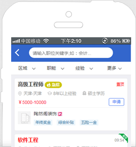 海量工作機(jī)會(huì)等著您,同一時(shí)刻您將面對數(shù)以十萬的工作機(jī)會(huì);幫助您記憶最近搜索條件,簡化您的搜索操作。